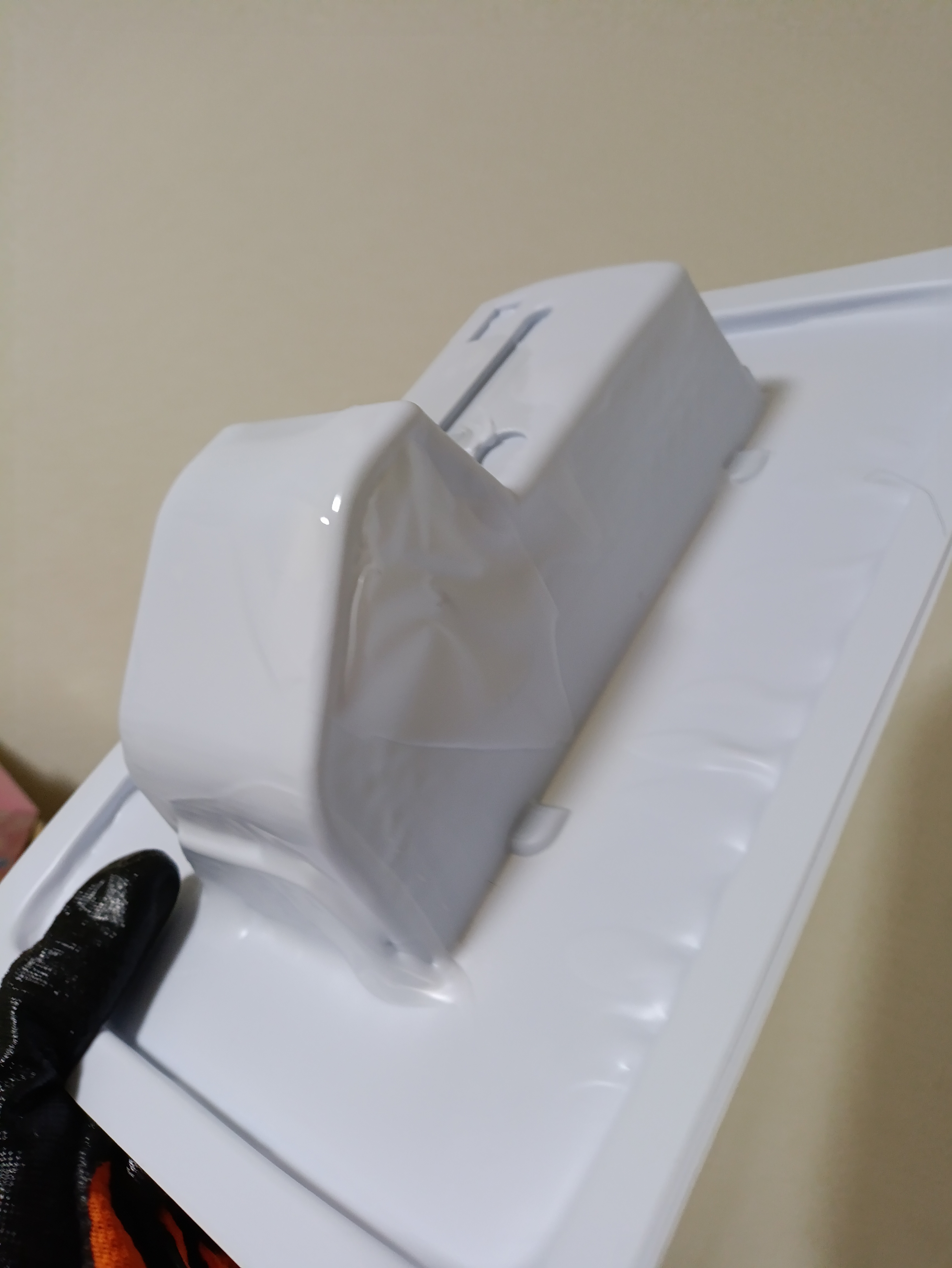 これが使えれば大幅コストカットになるので期待大・・・だったのですが大失敗。溶け方にムラがあるのかシートがうまく伸びず。型にかぶせた時点で破損。型は溶けなかったですが、そもそもかぶさっていないですからね。